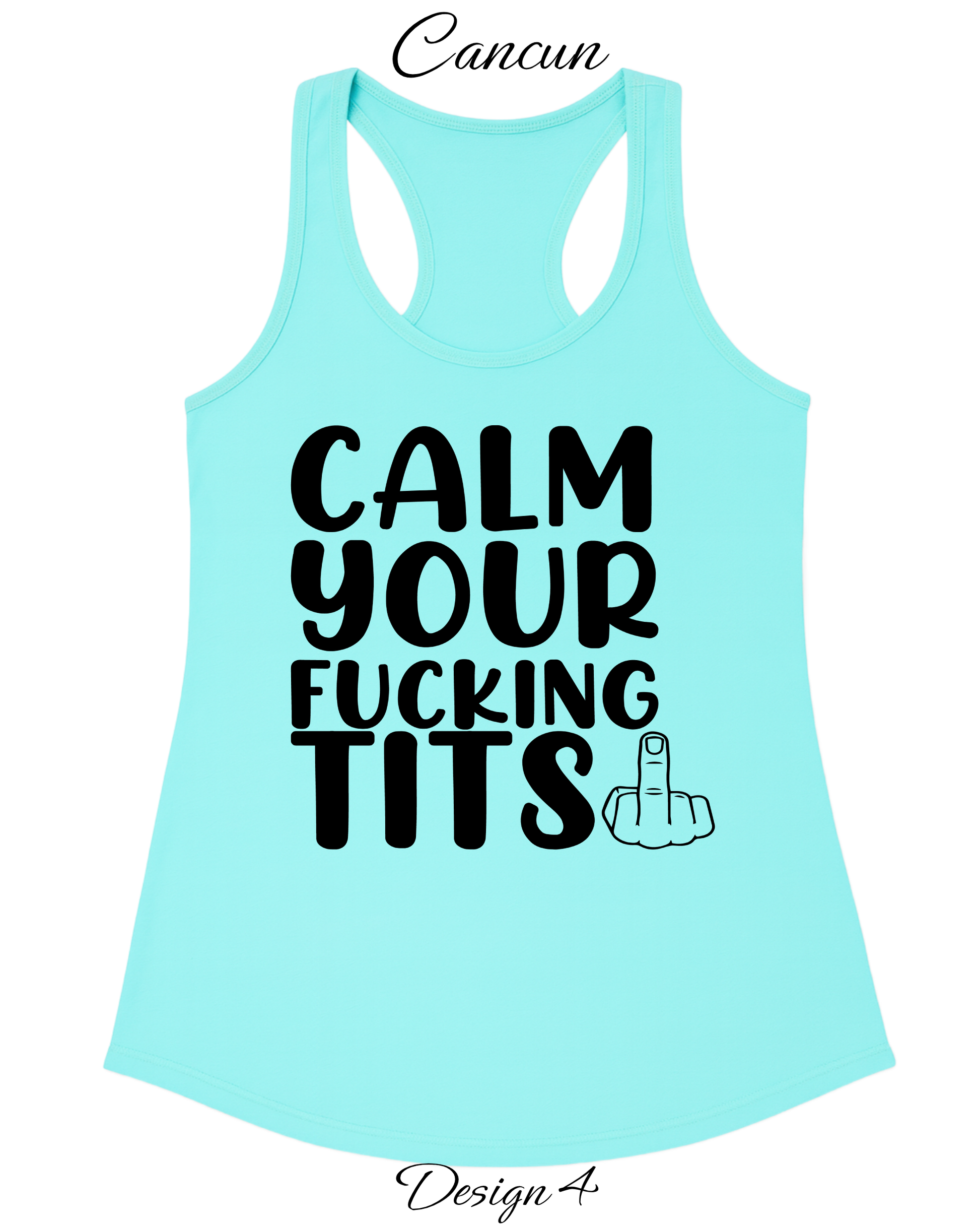 - Design On Shirt (please email me or input in the notes at checkout the design # and text you want on your tank or tee) - The design # for each design is listed below each shirt. To view design and saying on shirt refer to the pictures posted. YOU CAN PUT ANY DESIGN YOU CHOOSE ON ANY COLOR SHIRT YOU CHOOSE - COLORS IN DESIGN MIGHT BE ADJUSTED TO ENSURE VIBRANCE AND VISIBILITY ON THE COLOR OF SHIRT YOU CHOOSE!